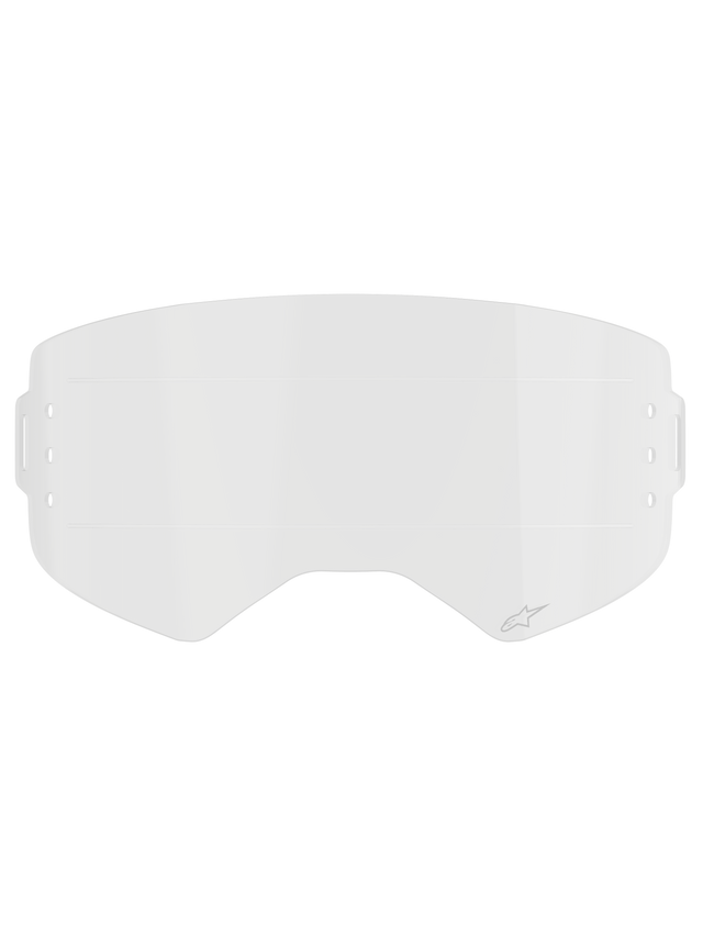 Alpinestars Supertech Roll Off Lens, Clear Goggle Accessory, Transparent injection-molded polycarbonate with horizontal glide lines, features small Alpinestars logo, official replacement part for Supertech Wide Vision goggles