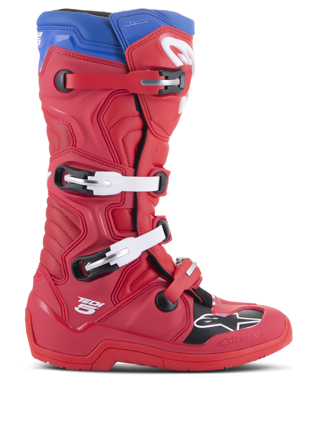 Coming in the wake of the hugely successful and iconic Tech 10 and Tech 7 the new Tech 5 is an advanced multi-material, multi-panel construction boot that further strengthens Alpinestars line-up of class-leading motocross and off-road boots. Incorporating an innovative microfiber chassis, which is extremely durable and lightweight, a medial biomechanical pivot system for excellent levels of support and stability and extended accordion flex zones, the Tech 5 affords performance fit and high levels of comfort and durability.