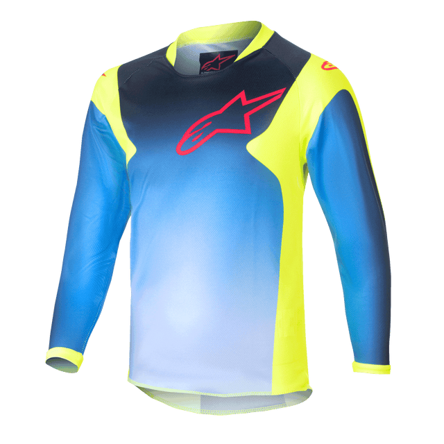 Het Kids Racer Jersey is verkrijgbaar in twee onderscheidende en agressieve kleurcombinaties voor de Kids Racer Hoen en Kids Racer Found stijlen, ontworpen om te passen bij de Kids Racer Pants voor een totale prestatie-look en -gevoel.