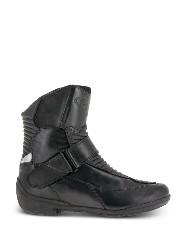 Handig breed instapsysteem met grote klittenbandsluiting® beveiligde scheenflap, ondersteund door een weerbestendige inzetstuk die gemakkelijke toegang en nauwkeurige pasvorm biedt.