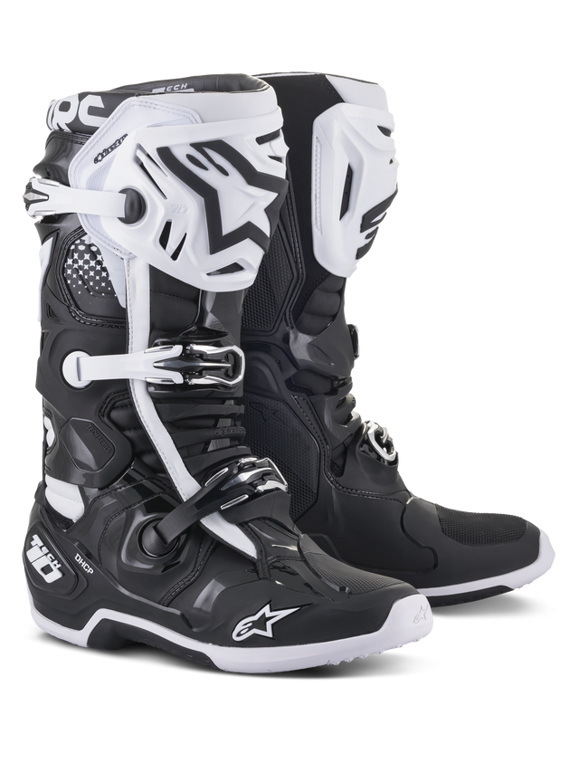 Het ontwerp van de Tech 10 wordt geleid door drie prioriteiten; de algehele functionaliteit, prestaties en veiligheid verbeteren, het gewicht verminderen en het materiaalvolume verkleinen. Het resultaat is een laars met een groter bewegingsbereik en flexibiliteit, terwijl er betere controle is over de buig- en torsiekrachten die de laarsprestaties aanzienlijk verbeteren, waardoor de rijder meer vertrouwen en bescherming krijgt.
